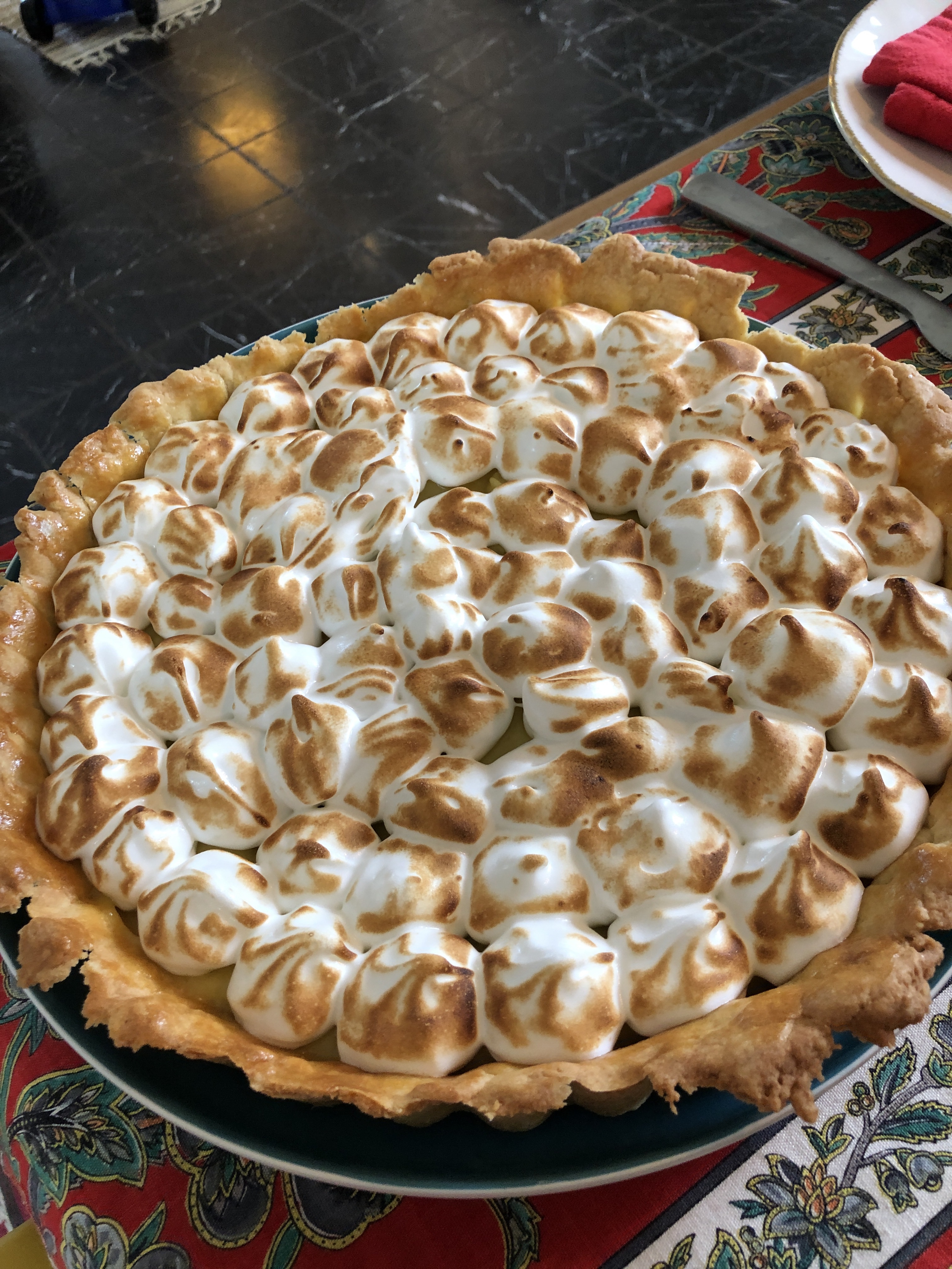 Préparer la meringue en battant les blancs d’œufs en neige ferme avec la pincée de sel, puis ajouter peu à peu le sucre. Mettre la meringue à la poche à douille sur la tarte et soit passer chaque pic de meringue au chalumeau soit passer au four grill 5 à 6 mns. Bon appétit!