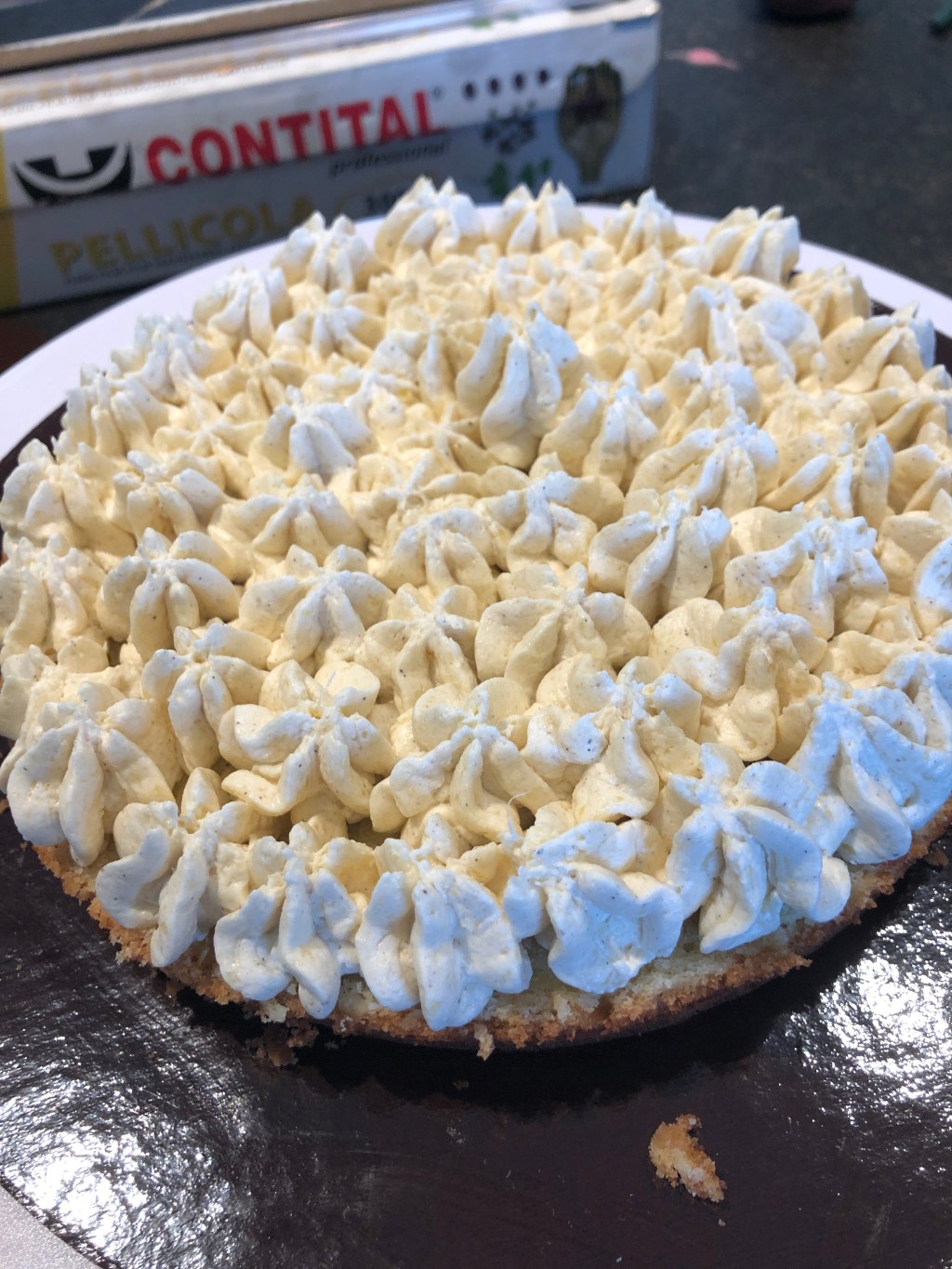 Battre le beurre pommade et ajouter peu à peu le sucre glace. Si vous avez de la poudre de meringue ajoutez en une cac. Une fois que la crème est prise ajouter la purée d’ananas peu à peu. Si la crème commence à cailler, arrêtez d’ajouter la purée et continuez à battre, elle va reprendre son consistance normale en quelques minutes.